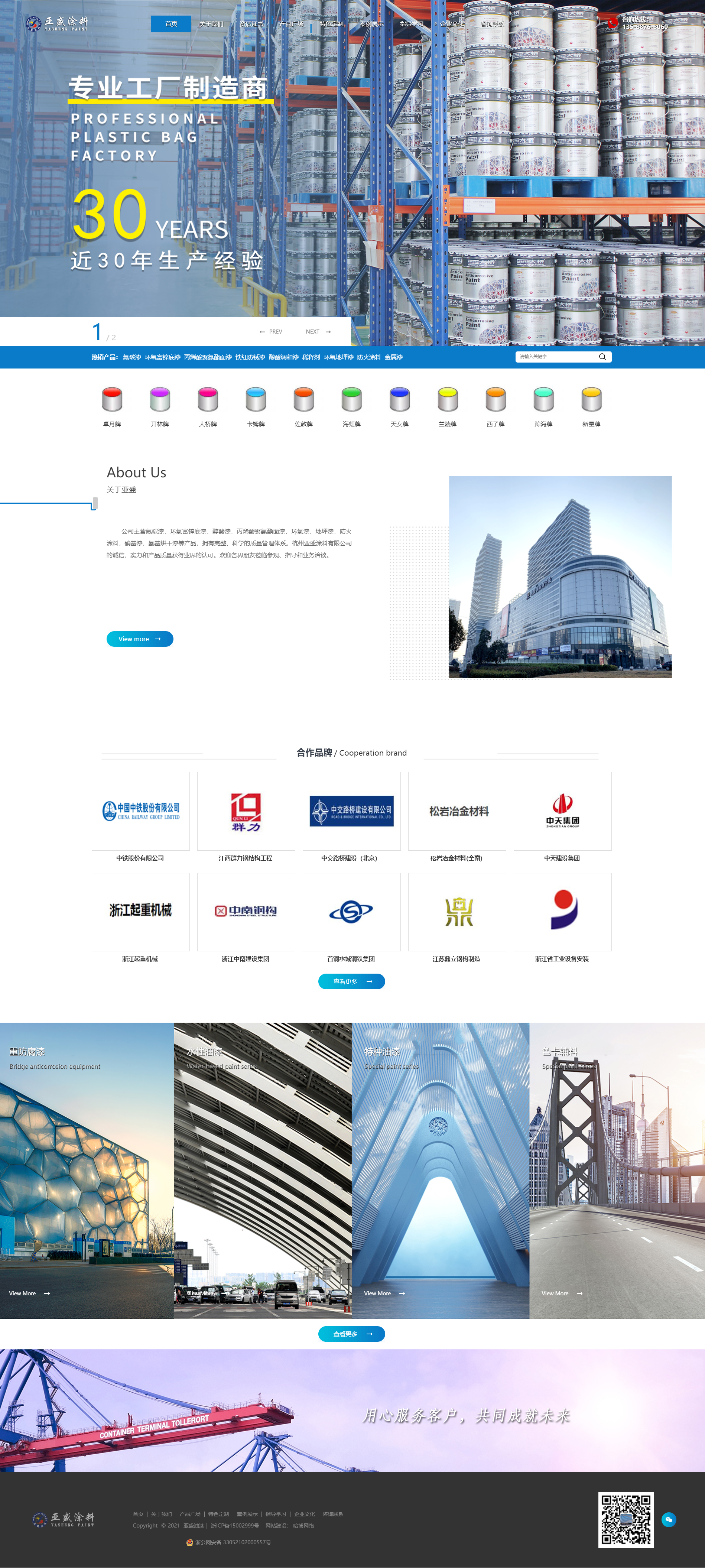 2000年3月28日,杭州油漆廠整體改制為“杭州油漆有限公司”,廠址確定在杭州市登云路,杭州亞盛物資有限公司也遷址到該廠區(qū)。隨著歲月的變遷,本公司依然銷售“大橋牌油漆”。同時兼售“天女牌油漆”、“開林油漆”、“蘭陵油漆”、 “海虹老人牌油漆”、“卓月油漆”等多品牌產(chǎn)品。歡迎各界朋友蒞臨參觀、指導(dǎo)和業(yè)務(wù)洽談。