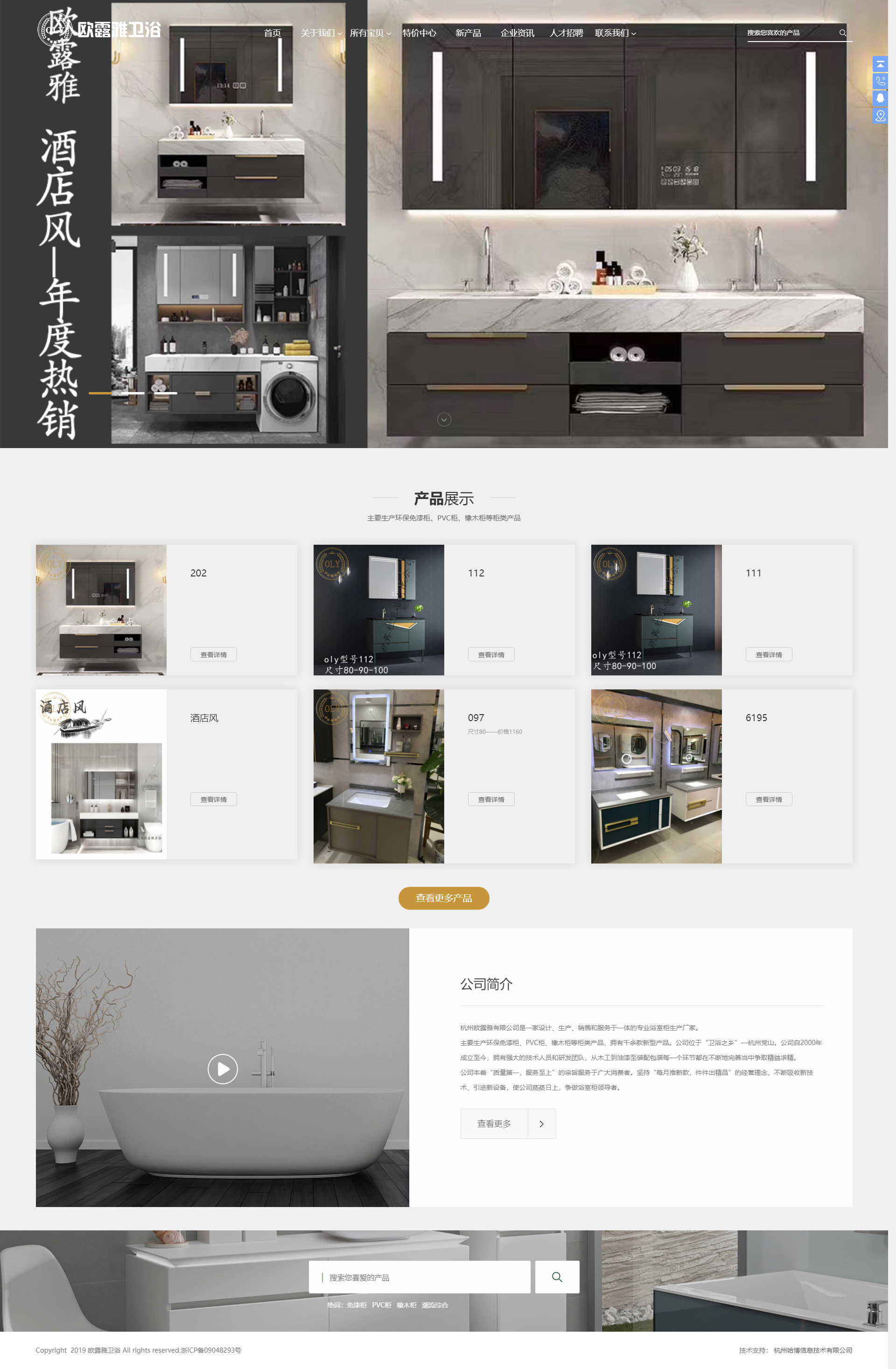 主要生產(chǎn)環(huán)保免漆柜、PVC柜、橡木柜等柜類產(chǎn)品,擁有千余款新型產(chǎn)品。公司位于“衛(wèi)浴之鄉(xiāng)”—杭州黨山。公司自2000年成立至今,擁有強大的技術(shù)人員和研發(fā)團隊,從木工到油漆至裝配包裝每一個環(huán)節(jié)都在不斷地完善當中爭取精益求精。