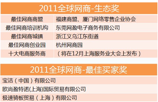 2011全球十佳網(wǎng)商及各單項(xiàng)名單于9月9日晚揭曉: